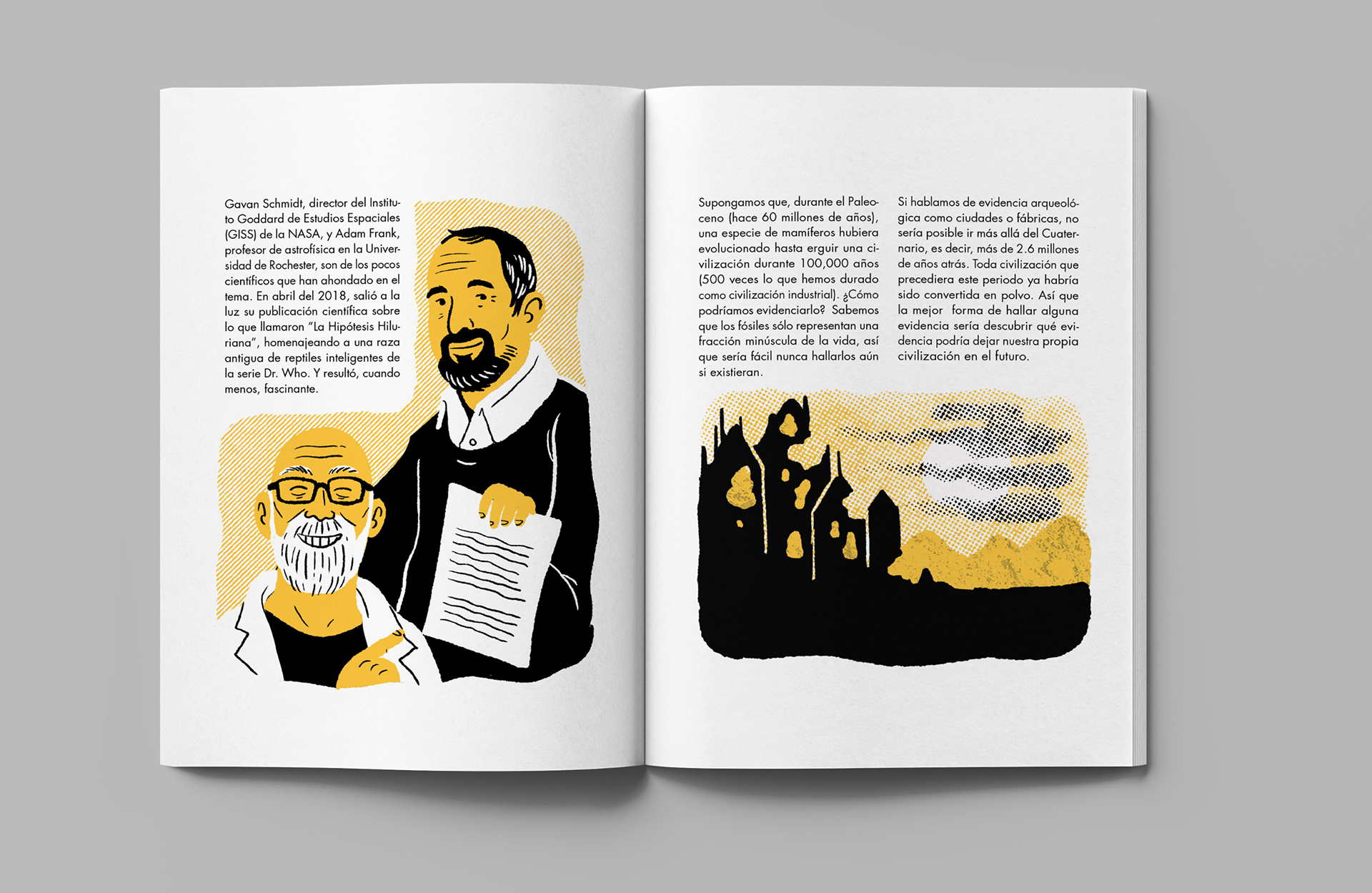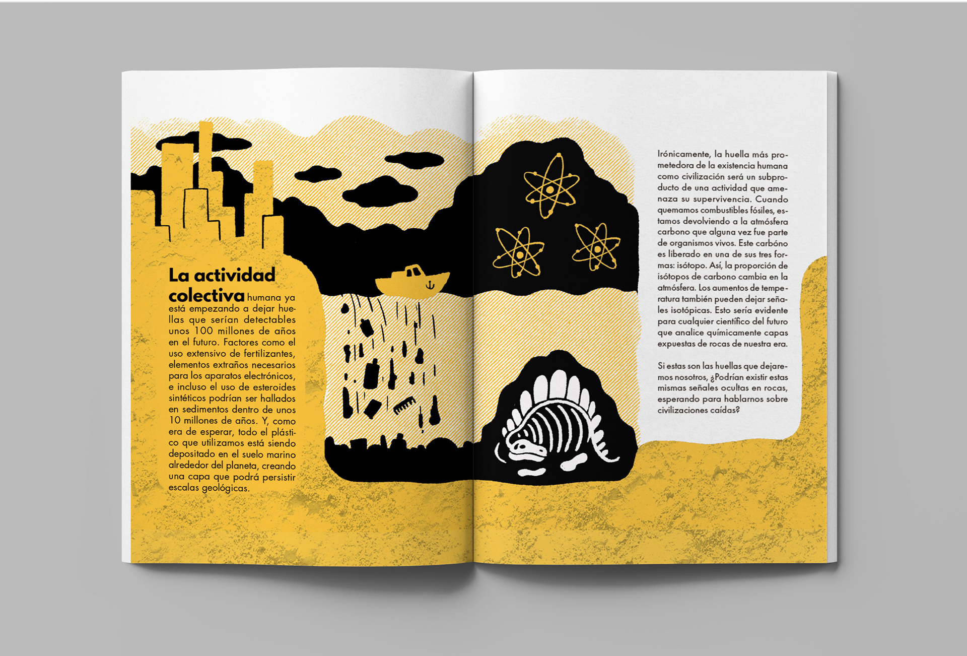 No soy 100tífiko (I'm Not a Scientist) is an illustrated fanzine that covers complex, scientific topics in a friendly and accessible manner for non-scientists. It uses lots of visual storytelling with a simple illustrated style. This was my final proyect for my Magazine Design class in college.