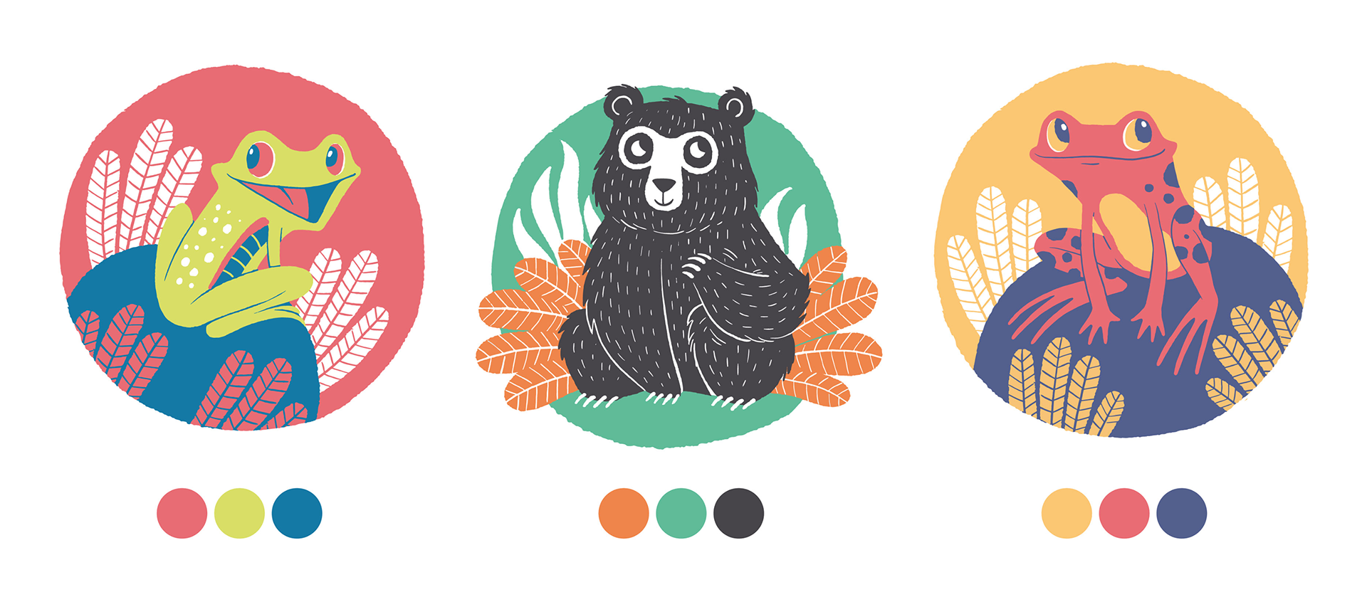 This was an illustration project for eco-friendly toteĀ bags. The goal was to represent endangered species in Colombia to raise awareness while promoting a sustainable product. Each illustration was designed with three color palettes for screen printing.